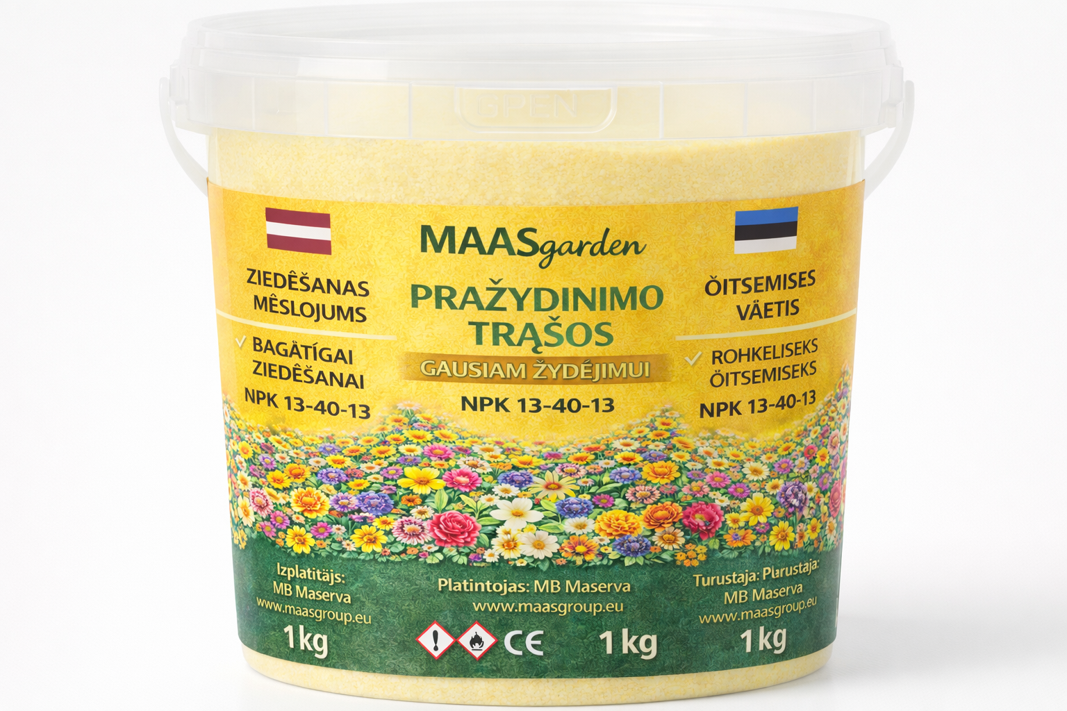 Paruošimas: 10–20 g trąšų ištirpinkite 10 l vandens.